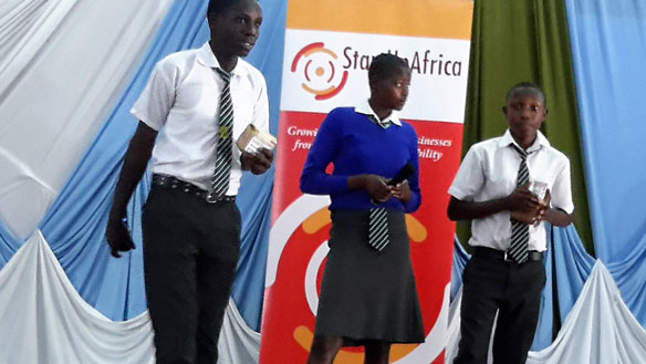• A section of Kajire Girls listens keenly to Start-Up Africa Executive Director as they prepare for the competition